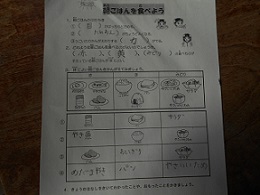 朝ごはんを食べることの重要性や栄養バランスを考えたメニューなどについて,子どもたちが自分なりにメニューの組み合わせを考えました。