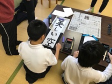 3年生以上は学習の中で毛筆で文字を書くことを学んでいます。しかしながら,現在の日常生活の中で毛筆を扱うことはほとんどなく,習い事として書道教室に通っている子もいますが、多くの子どもたちが四苦八苦しながら取り組んでいます。