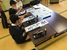 昨日の活動では,明日の書初めに向けての練習をしたり,小筆の使い方を教えていただいたりしました。
