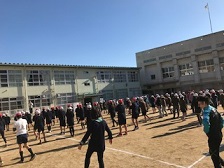 中学校進学を前にして,本庄中学校区の3小学校の6年生が集まりました。長なわとびやドッジボールを通して交流を図り,中学校進学の際にスムーズに仲間づくりをするための交流会です。