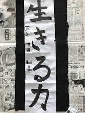 3年生は「生きる力」を書きました。今年度から書写で毛筆を扱うようになったばかりですので,書初めも難しかったと思います。