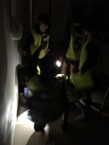 災害はいつ起こるか分かりません。それがもし夜だとしたら,停電が起き,暗い中での行動を余儀なくされます。そのようなシチュエーションを体感し,危険性についても考えました。