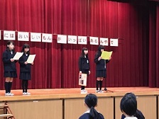 また,給食委員会の発表として,給食の歴史や給食クイズなどがありました。給食委員会からも「感謝状」を作ってプレゼントしました。