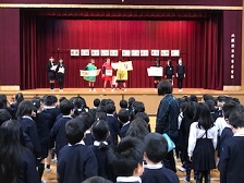 本日の児童集会は先週の給食週間の際に予定していた,調理員さんへの感謝の気持ちを伝える集会を行いました。