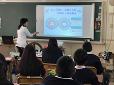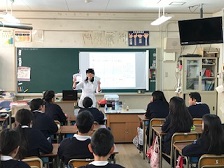 本日3時限目に,6年生の教室で「お薬教室」を開いていただきました。薬剤師さんに来ていただいて,薬の効果や正しい飲み方,薬の種類などについて学びました。