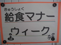 今週は「給食マナーウィーク」です。給食をおいしく,楽しく食べるためにも,マナーをしっかり守ろうと,低・中・高学年でそれぞれめあてをもって,取り組みます。