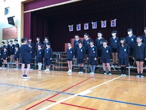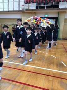 6年生の子どもたちは1年生と手を繋いで入場するときは照れと緊張の表情を見せていました。「卒業を祝う会」のプログラムを楽しみながらも,卒業を前にどこか寂しげな表情も見せていました。