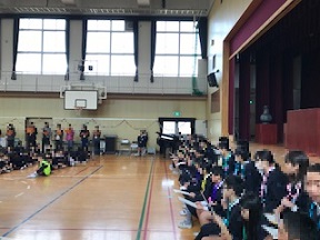 卒業を祝う会の後半には,教職員からのお祝いの歌のプレゼントがありました。6年生には秘密で練習しました。6年生もしっかり聴いてくれました。