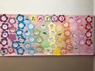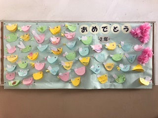 玄関掲示と同様に各学年の掲示板も卒業生へのお祝い掲示になっています。