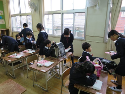式が終わった後,教室で6年生と一緒に,お話をしたり,絵本の読み聞かせをしてもらったりして,楽しく過ごせたようです。