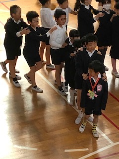 1年生を迎える会の後半には「じゃんけん列車」というゲームをしました。じゃんけんをして負けたら勝った人の後ろについていくのですが,大いに盛り上がりました。1年生も楽しんで参加できていたようです。