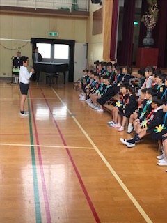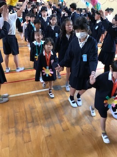 校長先生の話,児童代表の言葉と続いて,会は終わりました。1年生と上級生の距離が縮まった楽しいひと時が過ごせました。