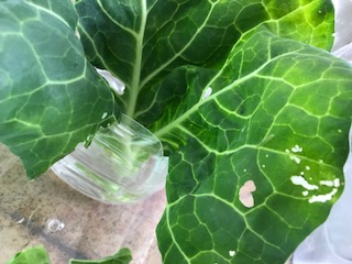 理科の学習では観察が大切になってきます。現在,モンシロチョウの幼虫を育てながら観察を続けています。生き物を大切にする心を育て,じっくり観察し新たな発見ができるようにな力を養っていけるよう取り組んでいます。