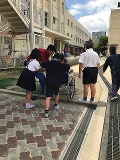 普段何気に歩いている道でも車いすにとっては移動しにくい道かもしれません。自分たちにできることは小さいことかもしれませんが,この日の体験を通して学んだことを生活の中で生かしてほしいと思います。