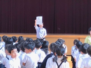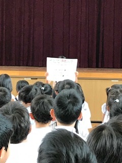 また,児童会や運動委員会からは「あいさつ週間」と「外で遊ぶデー」のお知らせがありました。「あいさつ週間」は今週の活動です。「外で遊ぶデー」は毎週水曜日の15分休憩に運動委員会が体育倉庫を開放します。