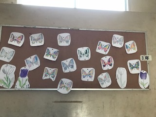 3年生は給食室横の階段1階と2階の間,4年生は給食室横の階段2階と3階の間に掲示板があります。