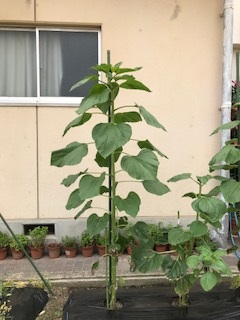 上の画像は1年生の学習園に植えてある「ひまわり」です。ずいぶん大きくなっています。