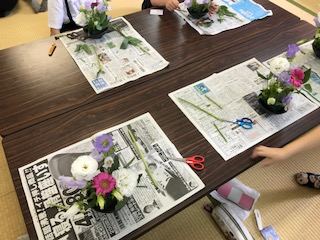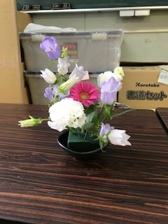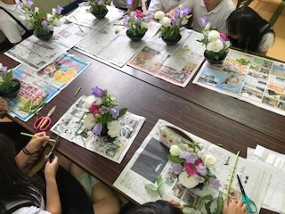 昨日,放課後「華道」教室がありました。花屋さんに講師として来ていただき,フラワーアレンジメントを楽しみました。一人一人の個性が表れた素晴らしい作品ができました。