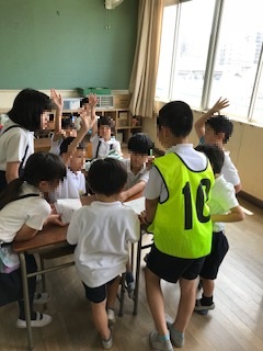 児童会は司会や代表の言葉だけでなく,前半・後半の遊び終了の放送など,見えないところでも活動しました。その結果,素晴らしいフェスティバルになりました。各班もフェスティバルの最後に反省会をしました。しっかり意見が出て,今後につながるものになりました。