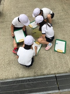 ザリガニ釣りの後には,観察シートに,観察して分かったことを絵に描いてみたり,言葉や文章で書いたりしました。