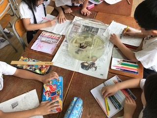 また,大きな画用紙にザリガニの特徴を捉えながら描いています。どのような個性あるザリガニの絵になるのか,楽しみです!!