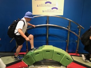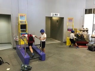 展示場に場所を移してからは班行動です。展示物の中には実際に触って確かめたり,係の方がちょっとした実験をしてくれたりするものもあります。子どもたちは楽しそうに展示に触れたり,見たりしながら,友だちと一緒に活動していました。