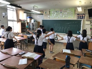 昨日の委員会活動時に,運動委員会の活動する教室から「ラジオ体操第一」の音楽が流れてきました。9月30日に実施する運動会で全校児童が取り組むため,運動委員会の子どもたちは今から練習に励んでいます。