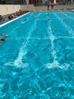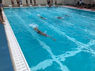 高学年は水慣れと基本となる「けのび」「バタ足」「クロール」を確認した後,泳力テストを行いました。泳法は「クロール」です。これまでの練習の成果を発揮しようと必死に泳いでいる姿に自然と歓声が沸き,50mや100mを泳ぎ切った友だちに拍手するなど,素晴らしい光景が見られました。泳力を伸ばすことは大切なことですが,何より友だちのがんばりを応援できることが立派でした。