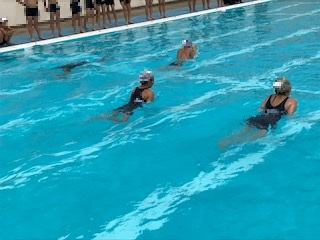 この日は午後からの2時間でしたたが,こまめな水分補給とできる限りプールの中に入って練習に取り組むことで,みんな元気に学習できました。