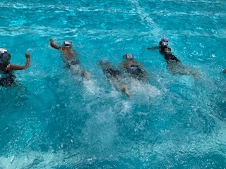 今日のプール水泳の最後は「たからさがし」でした。クラス対抗で,結果は1組の勝ちでした。