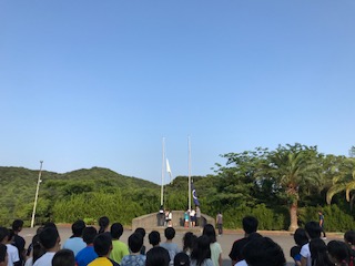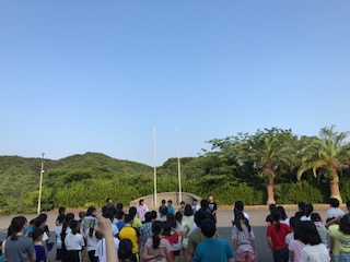夕べのつどいでは、国旗・所旗の降納、各団体の挨拶があります。