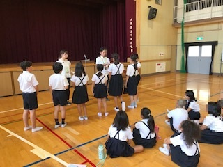 始業式の後,5.6年生は講堂に残って,7月23日〜25日に実施した「マリンスクール」の活動について表彰式を行いました。
