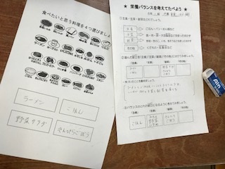 6年生の教室で,4時限目に食に関する指導を行いました。テーマは「栄養バランスを考えて食べよう」です。