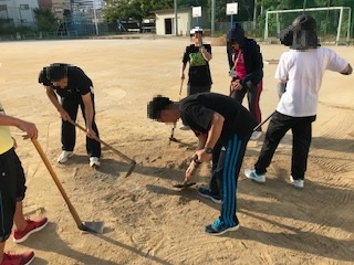 27日にも行いましたが,運動場を少し掘り返し,均すことの繰り返しによって,運動場の高低差や凸凹を減らすことができます。運動会に向けて,少しでも良いコンディションにしていきたいと思います。