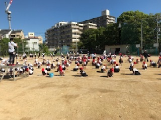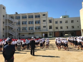 この日は運動会の赤組・白組で並ぶ隊形でしたが,集合が早く,いつも通り始めることができました。