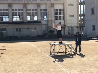 一昨日の児童朝会では,昨日の台風21号についてや給食委員会からのお知らせ,生活目標などについての話がありました。
