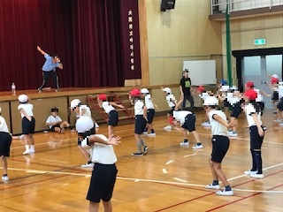 3.4年生の団体演技は,かなり体力と筋力を使う構成になっています。でも,一つ一つの動きがかっこよく,子どもたちは必死に踊っています。また,2曲編成のうち,1曲は「民舞」と言われる踊りで,もう1曲はノリのよいPOPな曲となっています。踊りの内容がガラッと変わりますので,そこも見どころです!