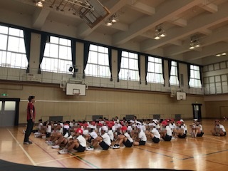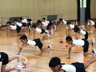 練習の初めには集合して,内容の確認をしたり,「さあやるぞ」という雰囲気づくりをしています。
