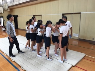 先週末,5.6年生が運動会で披露する団体演技。その最後のピースとなる大技の練習しました。最大の見せ場であり,互いが一生懸命に,そして信頼し合ってこそできる技です。今日はマットを引いて,補助を入れながらの練習でした。何度も練習する中で,少しずつ成功するようになっています。