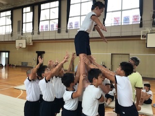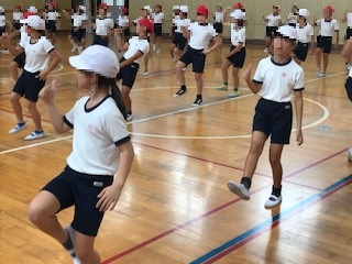 高学年は最後の大技を練習し,先週の金曜日に比べて,かなり上達しています。5時限目は通し練習で流れも確認し,完成度は日に日に上がっています。