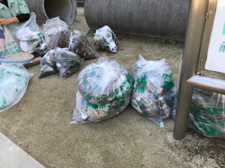 クリーンアップの結果,30,40分ほどの時間でしたが,かなりのごみが集まりました。多くは枯葉や木の枝でしたが,中にはハンガーや空き缶,感熱紙の芯など,様々なごみがありました。明らかに大人が捨てていると思われるごみもあります。