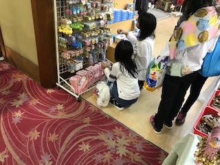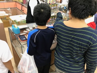 入浴後、お土産タイムでした。思い思いにお土産を買ったり、お揃いの物を買ったりしていました。