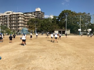 また,運動委員会が企画した「だるまさんがころんだ」も運動場で行われ,低学年を中心に楽しそうに活動していました。