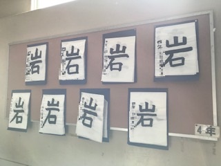 4年生:習字「岩」(給食室横階段2F〜3Fの踊り場)となっています。