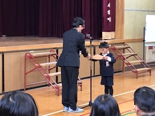 夏休みの防火図画コンクールにおいて,2年生1名が「努力賞」でしたので,全校児童の前で表彰されました。