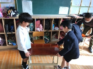 自分たちが使う場所をきれいにすることは当然のことだと思います。しかし,日常生活の中で,ほうきやちりとりを使うことが少ない子どもたちにとって,清掃活動は簡単なことではないようです。自分の役割を果たすことで身のまわりが美しくなることはたいへん素晴らしいことです。
