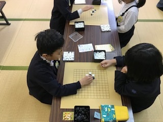 今学期は月曜日の学習教室を中止させていただいていますが,先週の木曜日には書道教室,昨日は1月限定で6年生を対象としたトレーニング教室,そして,本日は囲碁教室と続いています。