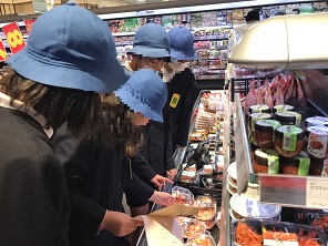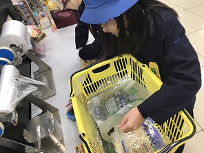 まずは,スーパーへ行き,班ごとに買い物をしました。決められた額の中で,買い物にいくらかかるか考えながら,買い物をすることができたようです。