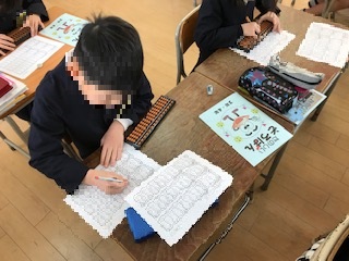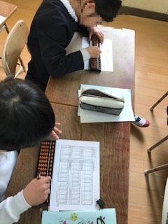 先週の金曜日,3年生はそろばんの授業を受けました。講師の方に来ていただき,各クラス2時限ずつ教えていただきました。