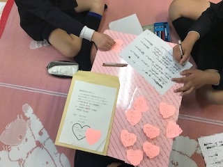 1年間の振り返りや自分以外の健康委員についてのメッセージを書きました。自分の良いところを書いてもらい,「心の健康メーター」も上昇したのではないでしょうか?